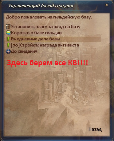 1. У НПС Джессика(Она находится в Вольной Гавани у Волшебного Фонтана) 2.Нажимаем клавишу "G/П" Откроется окно ГИ В нем нажимаем получить 1 Далее выбираем задание 2 и жмем получить Так же моно взять доп кв 3 нажимаем участвовать Обратите внимание на ваши Очки заслуг 4 Их моно тратить на разные вкуснящки в том числе получать зарплату на базе. Всем удачного кача!